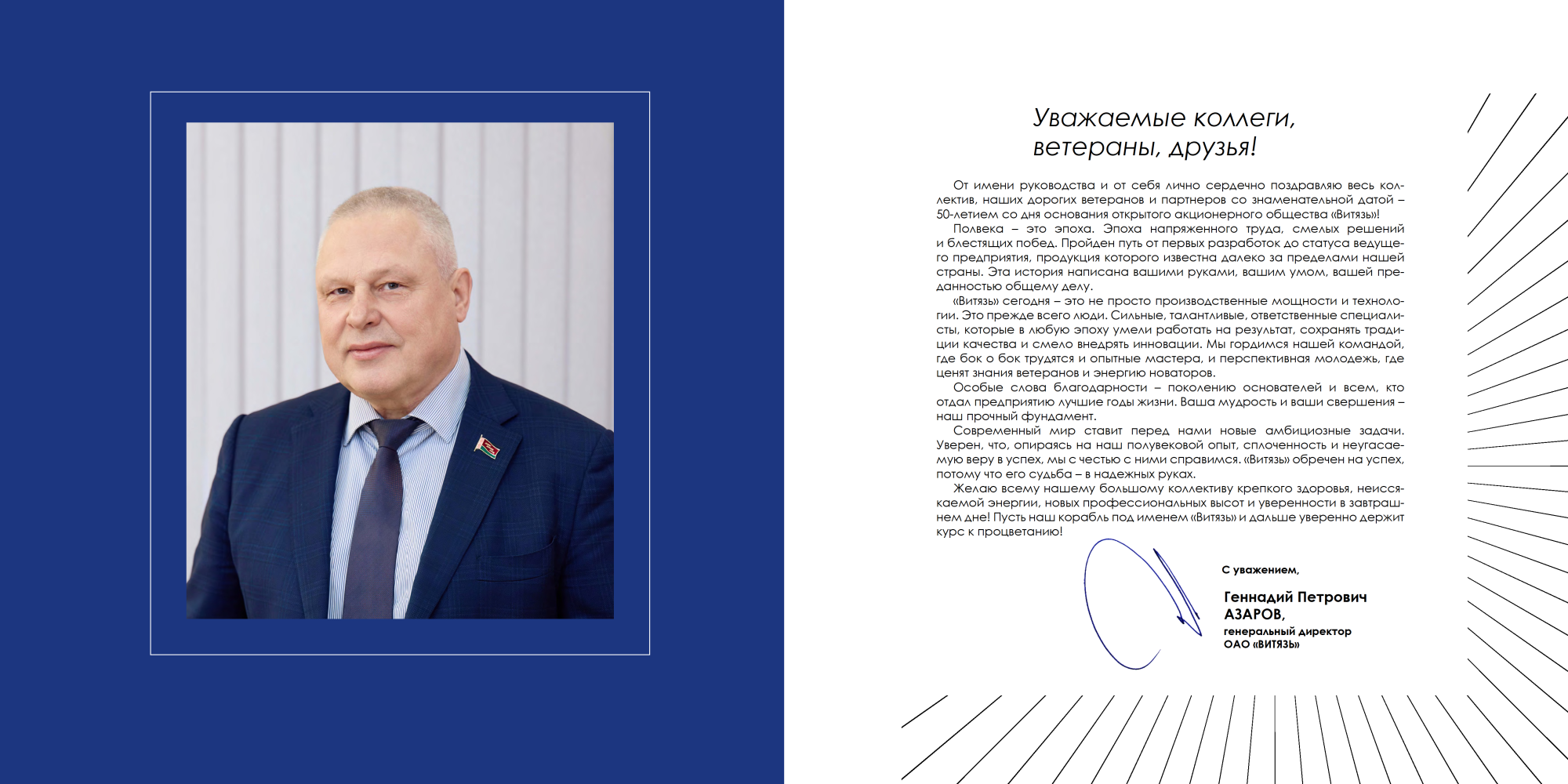 Поздравление генерального директора ОАО "Витязь" Геннадия Петровича Азарова с 50-летием со дня основания предприятия!